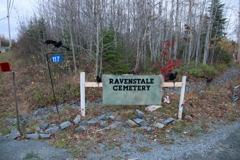 Ravenstale Cemetery sign at the end of the laneway.